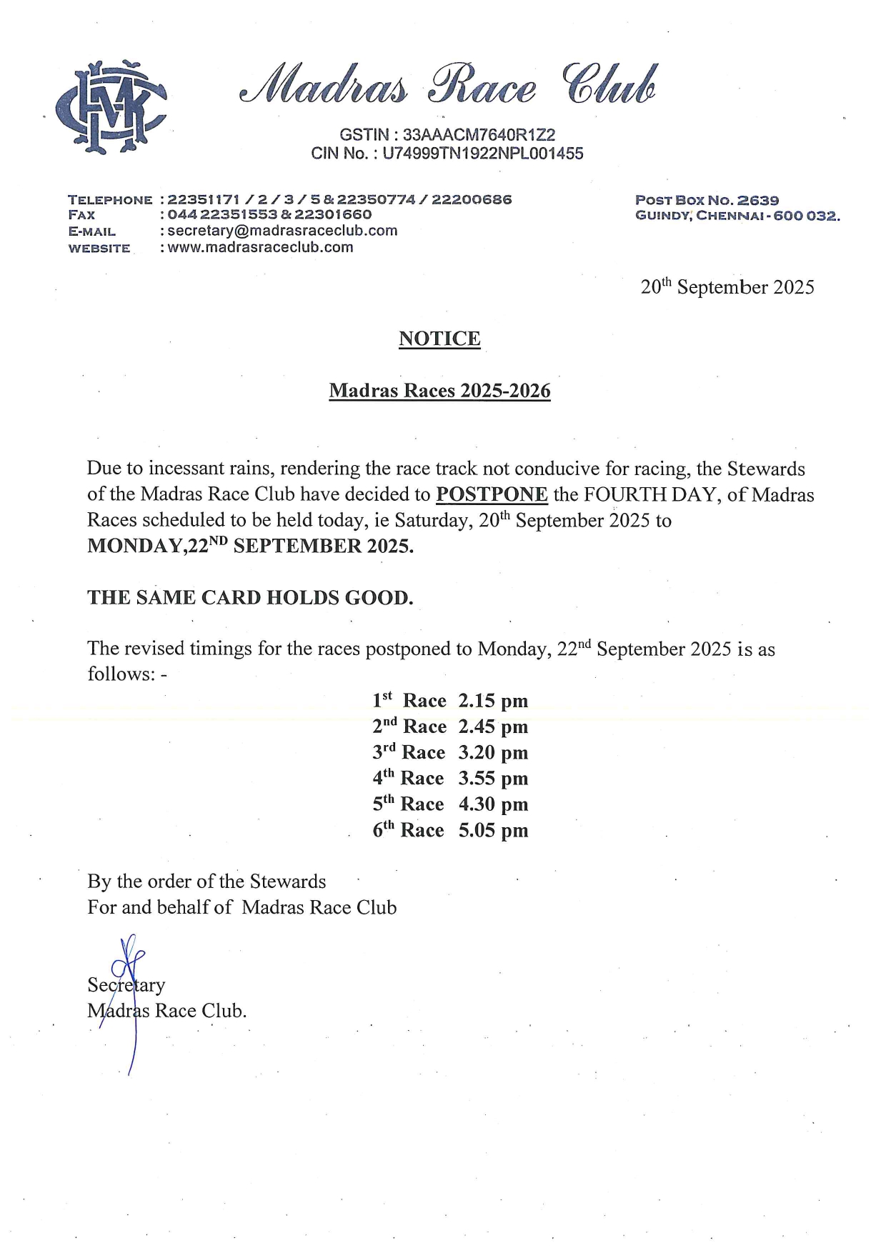 - By MADRAS RACE CLUB